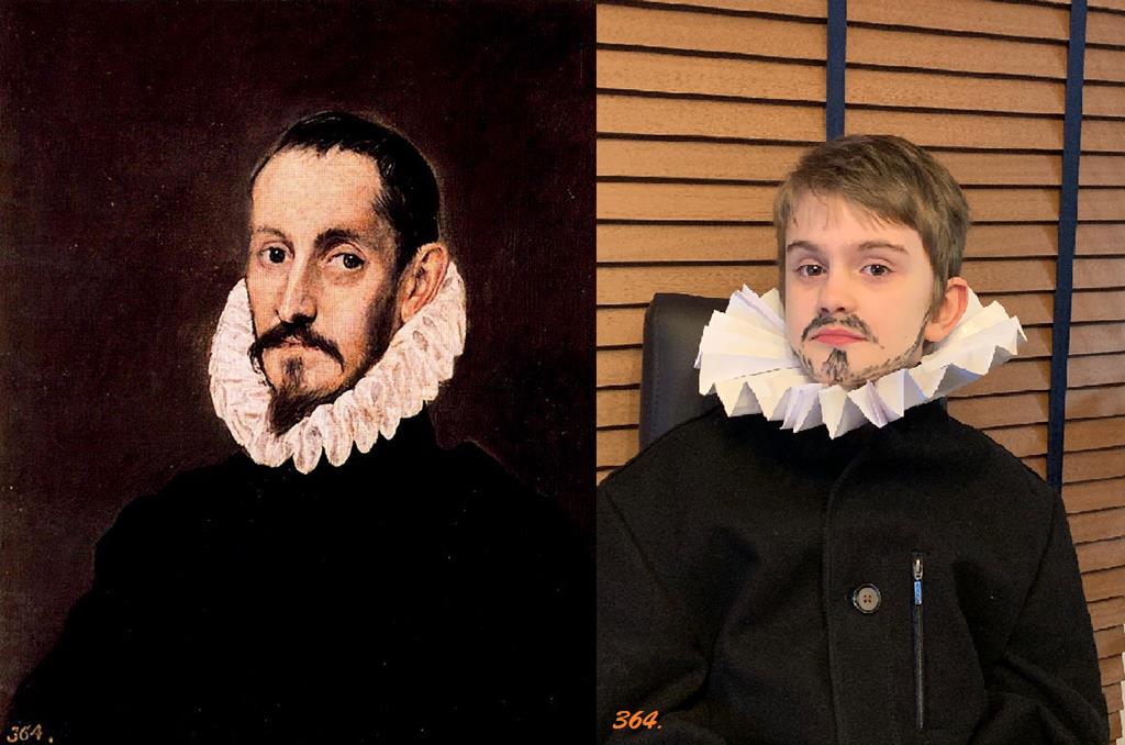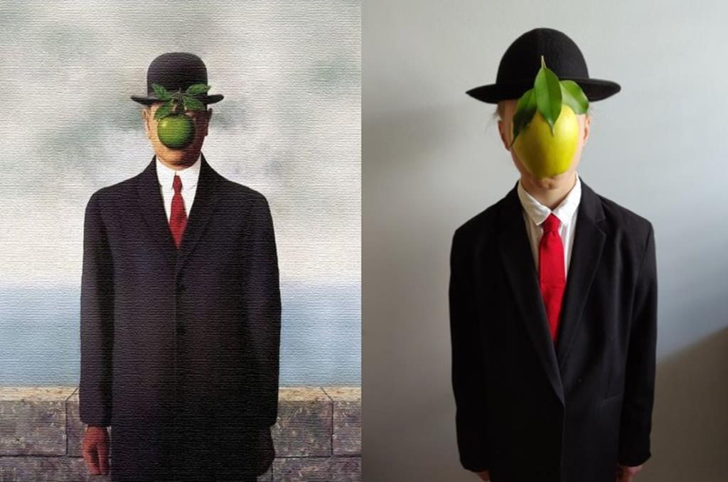 Miejsce 7: Krzysztof z klasy 4a w dziele Rene Magritte “Syn człowieczy”