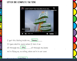 Ewolucja muzyki, uzupełnianie tekstów piosenek, poznanie nazw instrumentów muzycznych oraz wiele innych aktywności towarzyszyło uczniom na lekcji z języka angielskiego.