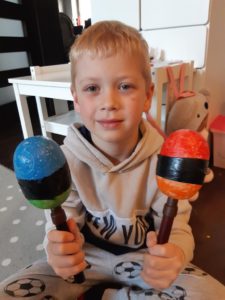 Wbrew pozorom czasami okazuje się, że w domu można też dobrze się bawić i uczyć przy okazji. W klasie 1a ostatnio intensywnie omawialiśmy temat instrumentów muzycznych oraz ich podstawowego podziału. Były gry i zabawy interaktywne oraz próby wspólnego śpiewu do rytmu. Wiele emocji wzbudził pokaz talentów w postaci koncertu. Blanka, Marysia, Weronika, Jakub i Szymek zaprezentowali krótkie utwory, nagrodzone gromkimi brawami. Jeremiasz z rodziną nagrał wspaniały film edukacyjny, prezentując swoją muzykalną rodzinę oraz instrumenty, na których grają na co dzień. Zwieńczeniem muzycznego tygodnia był projekt własnoręcznie wykonanych instrumentów. Pojawiły się wszelkie instrumenty perkusyjne, takie jak: grzechotki, bębny, marakasy i kije deszczowe, ale także kilka gitar, czy ukulele, a nawet flet. To wspaniale wiedzieć, że ma się tak kreatywnych uczniów pod opieką!