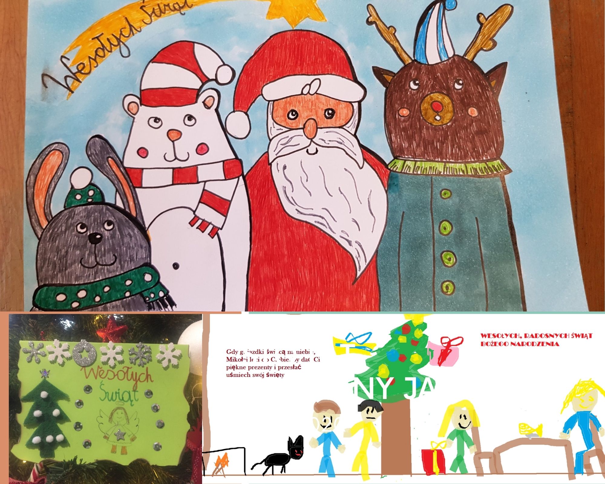 W klasach 4-8 najbardziej pomysłowe i estetyczne kartki stworzyli: 1 miejsce – Maria 7a, 2 miejsce – Filip 6b, 3 miejsce – Anna 7b.