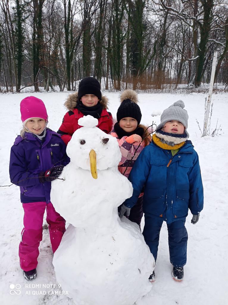 Po powrocie z ferii, pierwszoklasistów powitał śnieg, który w naszych okolicach jest prawdziwym rarytasem!